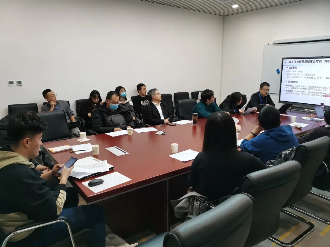 会后各年级辅导员分别和班主任就班上学生进行了交流,商议相关工作策略,帮助学生成长。