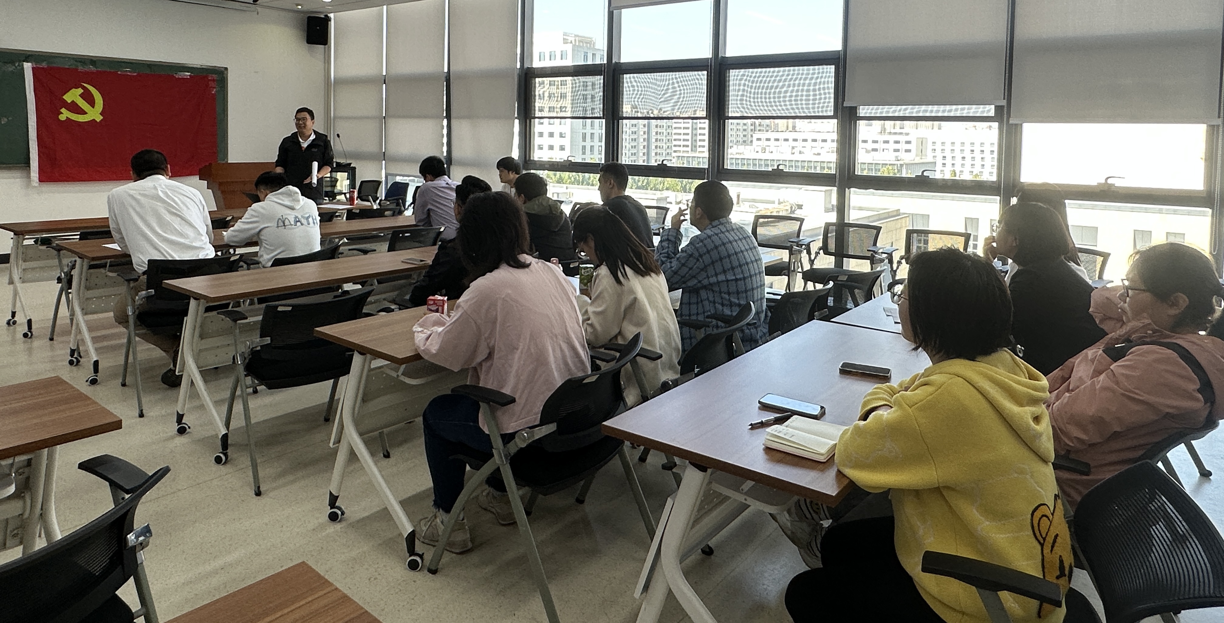 20231025日下午,计算科学系师生联合党支部在沙河主楼E404召开全体党员大会。会议由支部书记谢家新老师主持,支部全体师生党员参与本次会议。