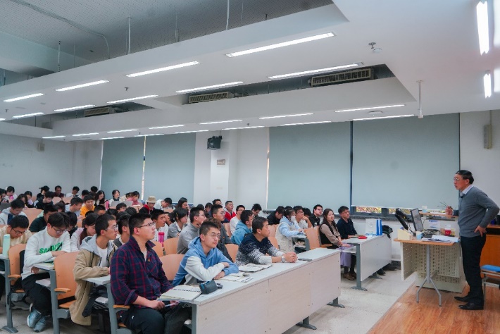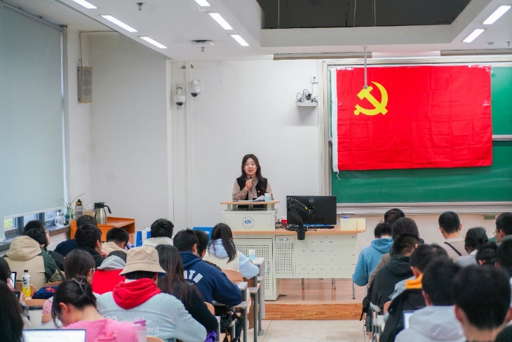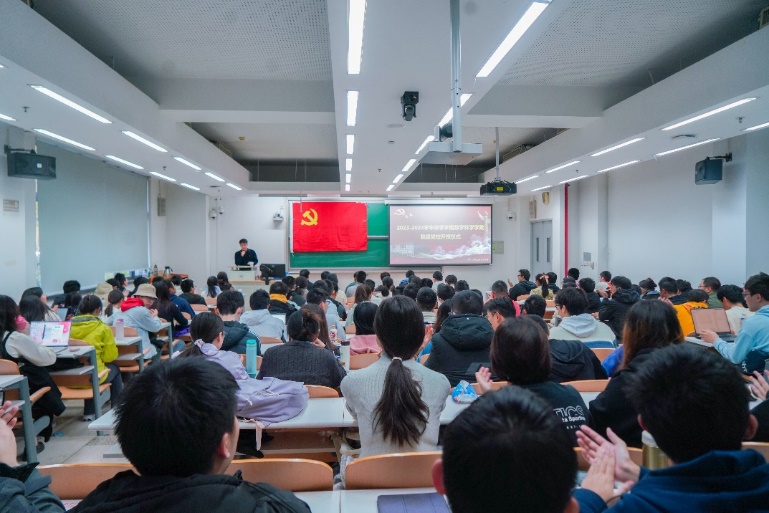 11月8日下午,澳门网投官方网站2023年秋季学期院党校第一次党课暨开班仪式于沙河校区J5-102举行。本次党课由中国航空技术国际控股有限公司原高级副总裁黄斌主讲。学院党委副书记魏茜、专职辅导员程乾出席,近150名学生党员和入党积极分子聆听学习。