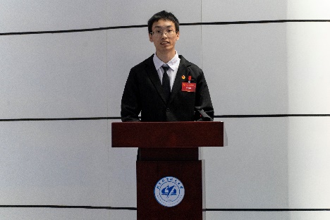 陆麒羽在学代会上发言。陆麒羽肯定了过去一年澳门网投官方网站学生会的一系列改革建设和思想引领工作,并对澳门网投官方网站学生会的未来的工作提出了期望与祝福,希望澳门网投官方网站学生会作好示范表率,引导同学们努力成长为有理想、敢担当、能吃苦、肯奋斗的新时代好青年。