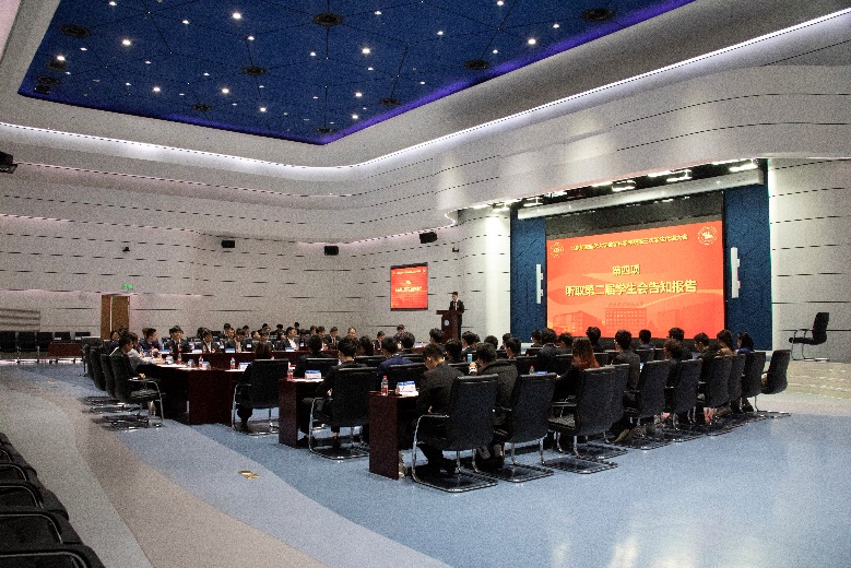 学院学生会主席团成员刘峻池向大会作工作报告。过去一年,澳门网投官方网站学生会以习近平新时代中国特色社会主义思想为指导,在思想引领、建章立制、文化活动、权益沟通等方面着力开展工作,获得了学院学生的认可。学生会将坚持围绕同学、服务同学的理念,结合学院中心工作,为取得新成果、迈上新高度而不断努力。