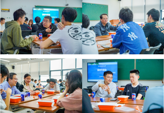 在午餐交流环节中,各位教师不仅热情地分享着各自的故事和经历,还耐心倾听、精准解答了同学们对数学领域的疑问,为各位同学提供了针对性的建议。