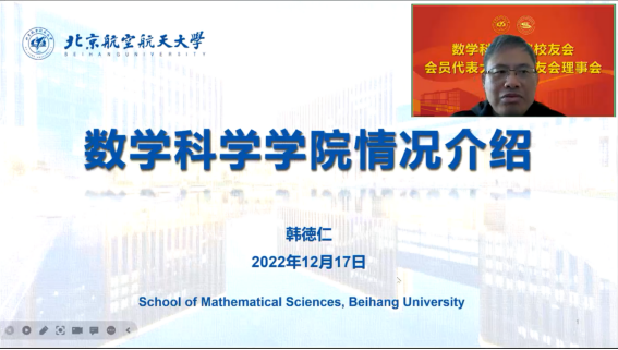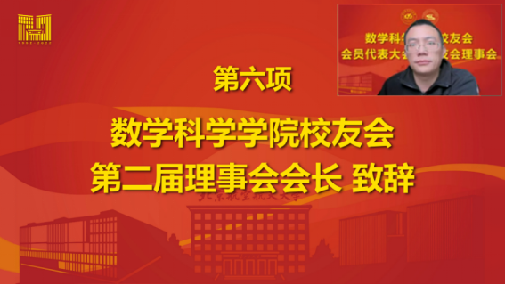 澳门网投官方网站校友会新当选理事会会长、学院党委书记袁星致辞,他对全体参会校友表示欢迎和问候,他表示,学院高度重视校友资源,扎实做好校友工作,营造数学学院校友的“家文化”,近年来,持续打造“数友论道”等特色校友活动,做好秩年校友的返校组织工作,搭建了校友之间交流信息、资源共享、联络感情的平台,也将持续团结和带领校友们积极进取,不断加强校友之间、校友与母校之间的联系,也希望全体校友能够支持校友会的工作,将个人发展与学校、学院发展相结合,助力学院的人才培养、学科发展以及学校双一流建设。