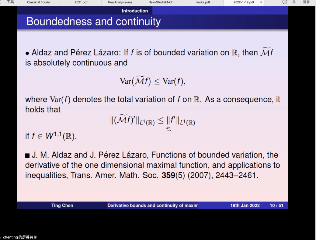 2022年01月19日下午,南开大学数学学院陈婷老师应邀为澳门网投官方网站师生做了题为 “Derivative bounds and continuity of maximal commutators”的学术报告,报告由张安老师主持。