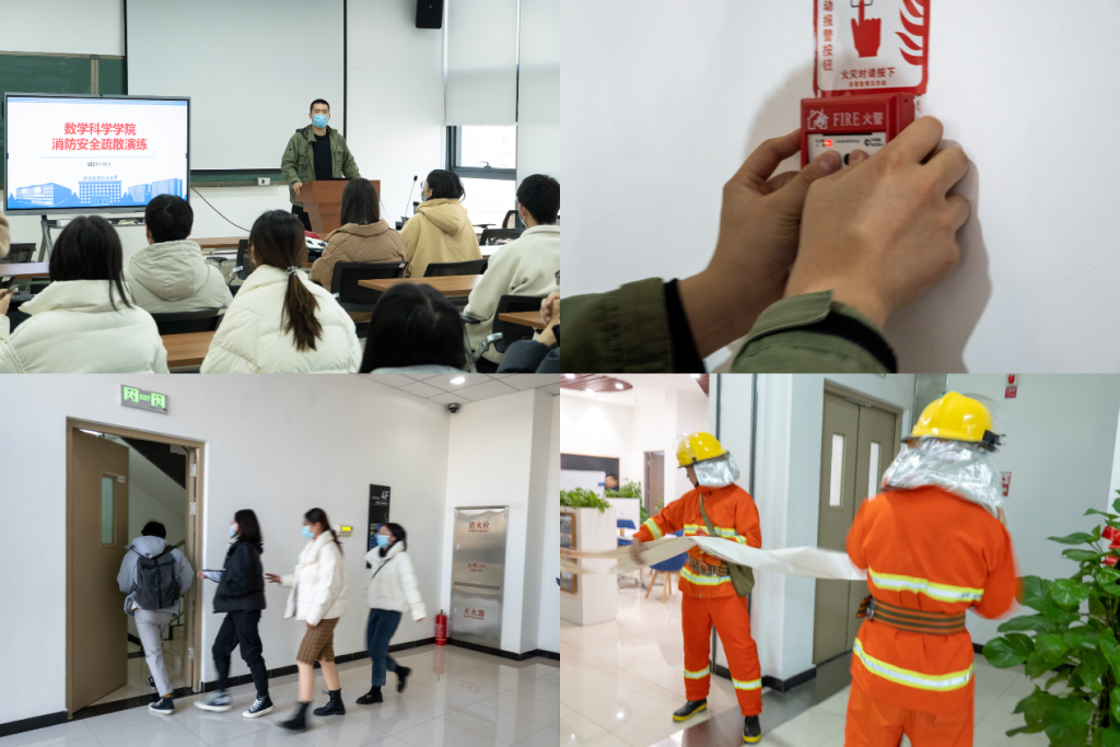 消防知识讲座后,学院组织30余位师生开展消防安全应急演练,演练模拟 E座4层东侧实验室因违规充电引发火灾,现场组织有序,“火情”发现者及时按响手动报警,并第一时间向学院消防安全领导小组以及沙河校区安保部报告。学院消防安全领导小组立即组织参与演练的师生从安全路线有序撤离。同时,接到报警后,校消防站队员及时响应,迅速赶到现场处理突发事件。