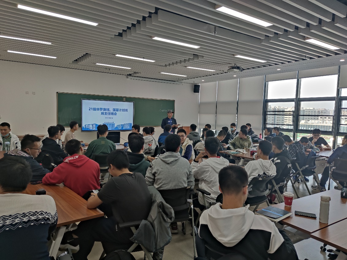 1013日下午,数学学院在沙河主楼E404教室召开21级华罗庚班、强基计划数学班班主任班会,学院本科教学副院长,2021级数学强基班、华罗庚班班主任杨义川教授,2021级数学强基班辅导员周国栋,2021级华罗庚班辅导员胡梦婷及全体2021级数学强基班、华罗庚班学生参会。