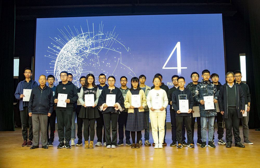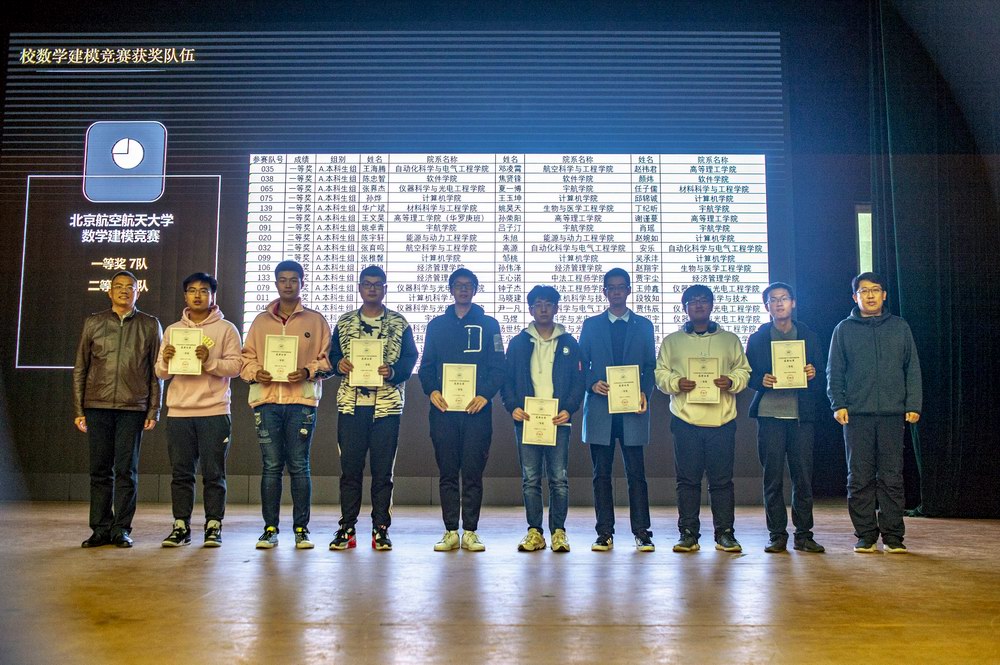 闭幕式第三项,袁星书记和郭炳晖老师为2019年北航建模竞赛获奖学生代表颁发证书。