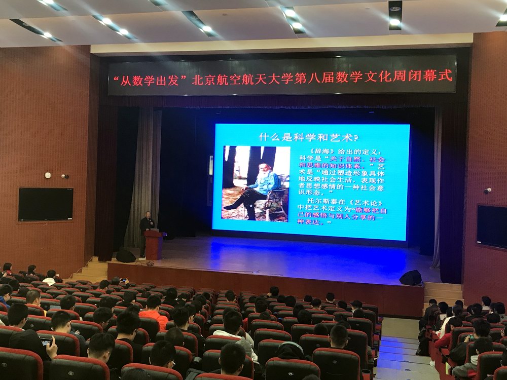 据悉,数学文化周是由数学学院主办的面向全校的数学文化大型活动,每年一届,至今已举办八届,本届数学文化周以“从数学出发”为活动主题,持续两个星期,期间举办了师生趣味运动会、校领导交流互动,“数海领航”外场活动,数学电影展演,数理相约晚会等精彩纷呈的数学文化活动,致力于为全校学生打造一场“数学文化盛宴”,在全校范围宣传和弘扬北航数学文化和精神。