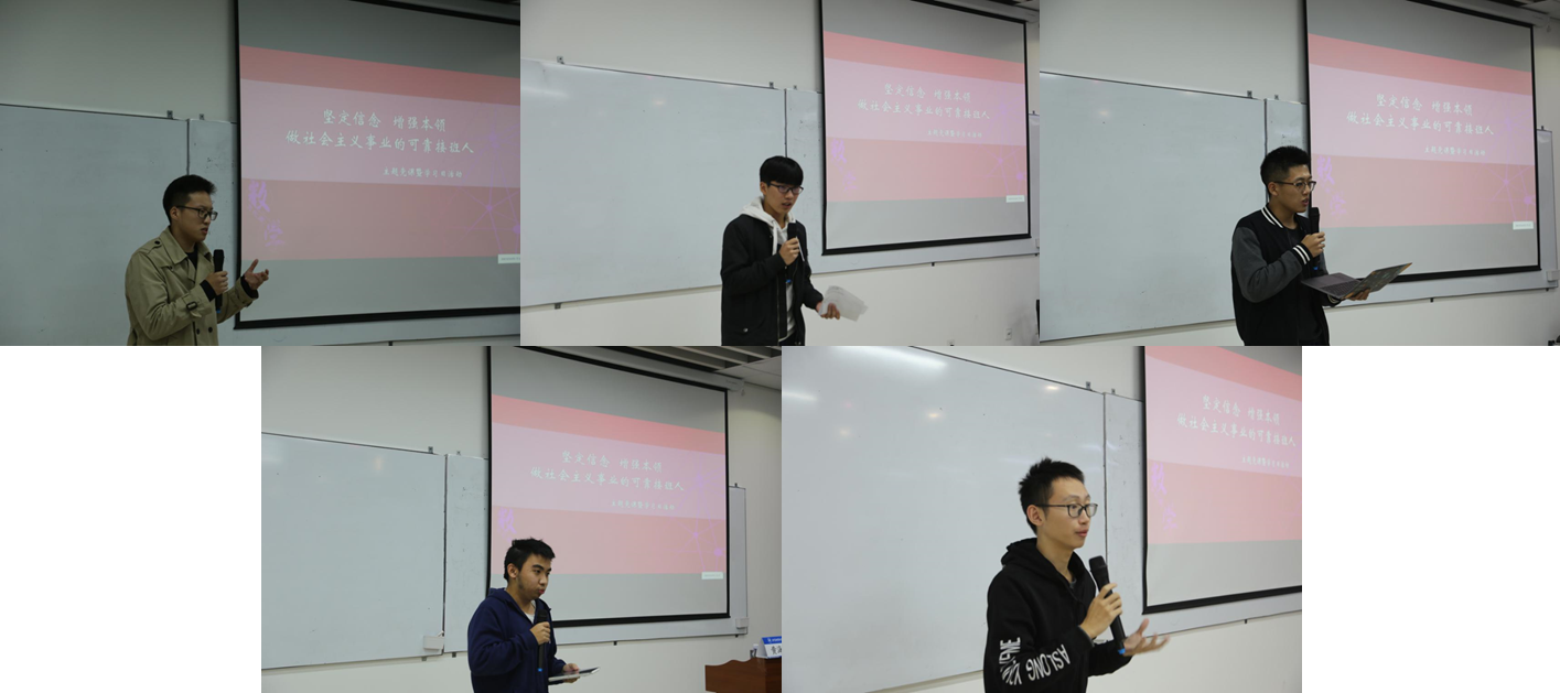 10月30日下午,澳门网投官方网站在沙河校区主楼E404举办了“从数学出发”第八届数学文化周系列活动暨学习日活动。黄海军副校长出席活动并讲主题党课,数学学院党委书记袁星、副院长杨义川、党委副书记丁丁、学院辅导员、本科170923班、华罗庚班、本科党支部预备党员和入党积极分子共90余人参加了此次活动。