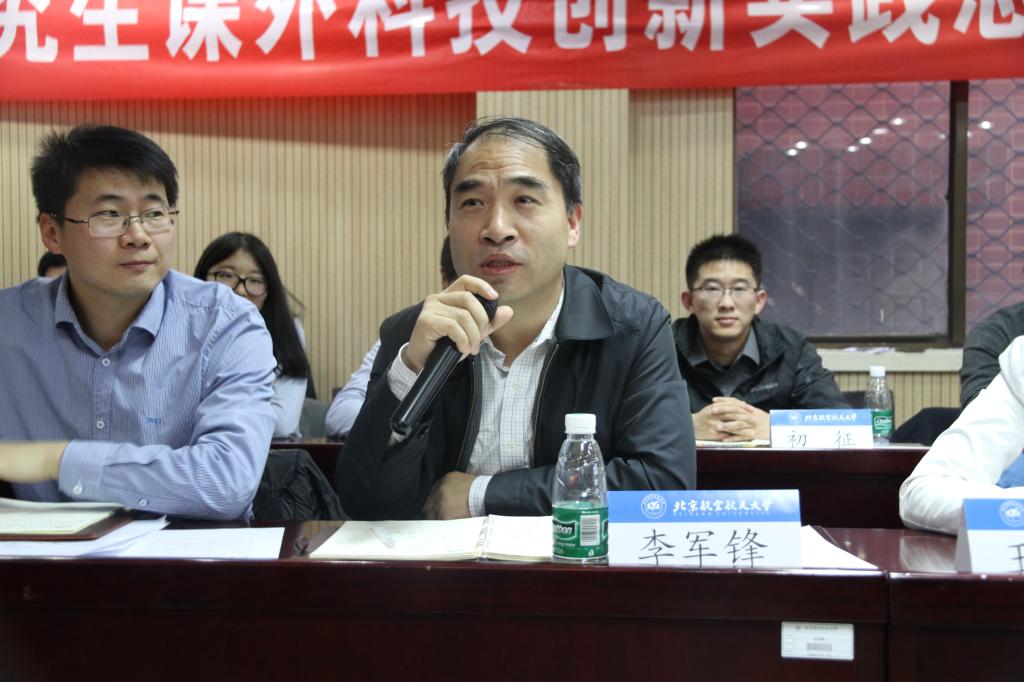 最后,李军锋书记就创新提出三点想法:一、创新是一个民族进步的灵魂,地方对创新创业都极其渴望,我们应利用所学知识主动出击,走出创业第一步;二、创新能力强已成为北航毕业生的主要特征,北航学生在创新阶段与校友合作,走向创新的辉煌点;三、创新应该成为我们的一种习惯,让它成为我们生活的一部分。并对北航研究生课外科技创新实践提出四点希望:第一,研究生与本科生不同,研究生的科研经费与资源更丰富,不同阶段,应该侧重于不同创新能力的培养。第二,我们应学会凭借学校的学科优势与科研创新交流平台,构造交叉学科创新实践平台。第三,学校各学院将致力于实施更多的激励保障措施,帮助学生解决学业中的难题。第四,我们研究生价值的体现不应该局限于社会公益活动,而应提高一个层次,为社会的一类人解决问题,将自身价值进一步提高。我院将认真学习会议精神,加大对研究生课外科技实践能力的关注和培养,让学生真正有平台,有资源,真正做到学有所用,学有所成。