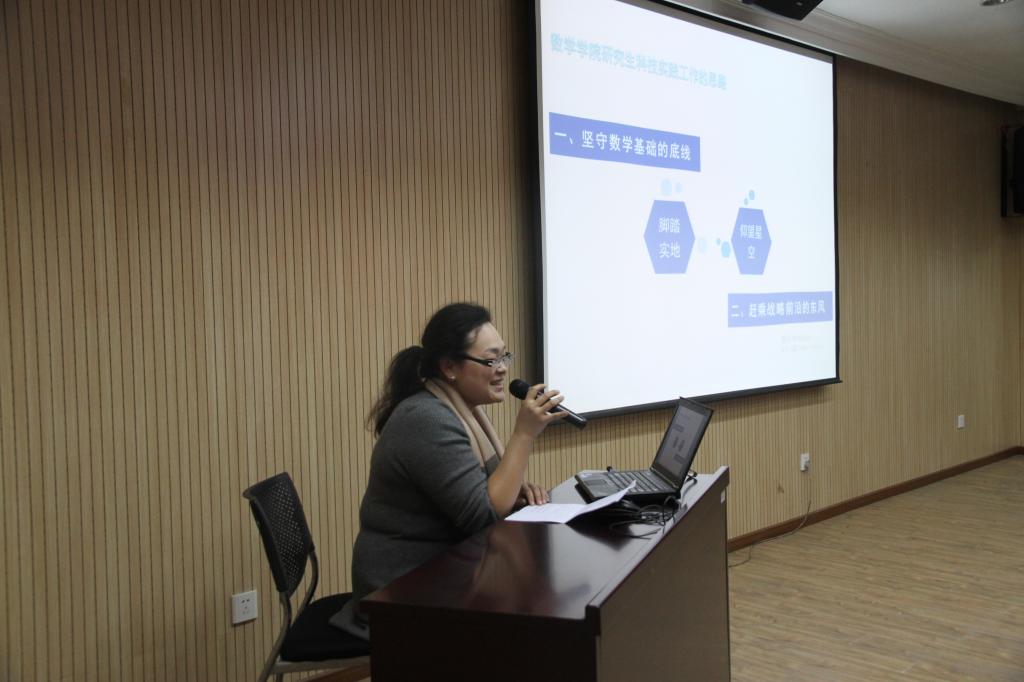 表彰会上,我院研究生指导主任丁丁作为代表发言,从坚守数学基础底线,赶乘战略东风的出发,结合学院建设本研一体化数学建模培训实践机制,介绍了学院在学生科技创新实践中的探索和思路。