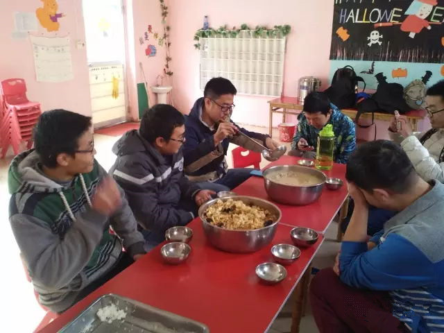 2015.11.8:那是飘着雪的一个早晨。可能是支教项目第一次招人,大家对此都不是很了解,加上下雪天,所以去的人不是很多,只有七个人。凭借着在北航蓝天志愿者协会的一些经验,我们上了一节小数巧算课和一节词语接龙的活动课。说实话,孩子们第一次见到我们并没有感到太多的陌生,而是很快的和我们打成一片。所以,孩子们还是听的很认真,玩的很开心的。中午结束上课后,我们留下来帮校长图画墙壁,装饰校园,最后也被校长挽留下来,在小学里吃了中午饭。在喝下第一口蛋汤的时候,整个上午都是暖暖的回忆,洋溢在每个志愿者的脸上。因此,我们有了一个良好的开头。
