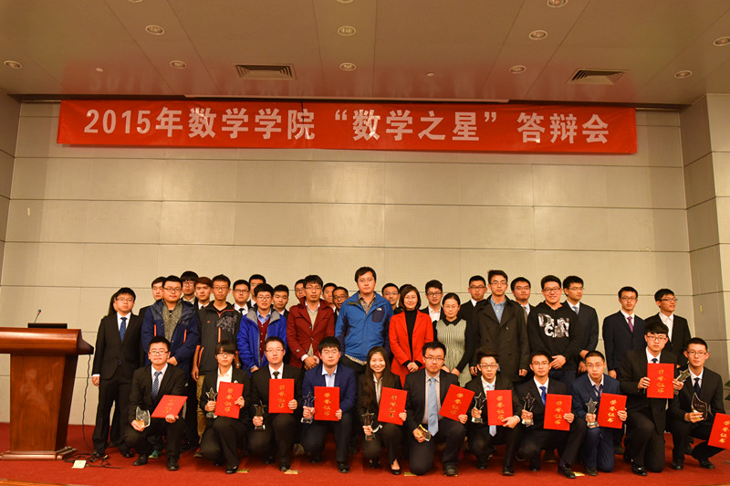 11月17日,2015年数学学院“数学之星”答辩会在沙河校区实验四楼205报告厅举行。“数学之星”奖项的设立,旨在表彰数学学院在学习、科技实践、社会工作、志愿服务、创新创业以及文体等方面表现优异的同学和团队,树立宣传学习的典范。本次答辩会有33位同学竞争“数学之星”,7支团队竞争“明星团队”。沙河校区党委书记陈志英教授,数学学院分党委副书记王菲老师,各年级班主任、辅导员以及学生代表担任了评委。