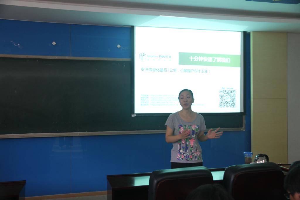 随后,思迈特徐晶(学院95级校友)用浅显的方式介绍了Smartbi如何以完整的产品线和对行业的责任心“引领国产BI十五年”,并很快过渡到新近发布的“Smartbi Mining”上来。接下来,由产品经理汪尚为大家带来1个半小时的激情演讲。讲台上汪尚一展风采,将多年来数据挖掘的成果、感悟、收获毫不保留的分享,通过“过程挖掘”的创新方式将医药专家系统的建模过程“表演”出来,得到在座嘉宾的一致好评。