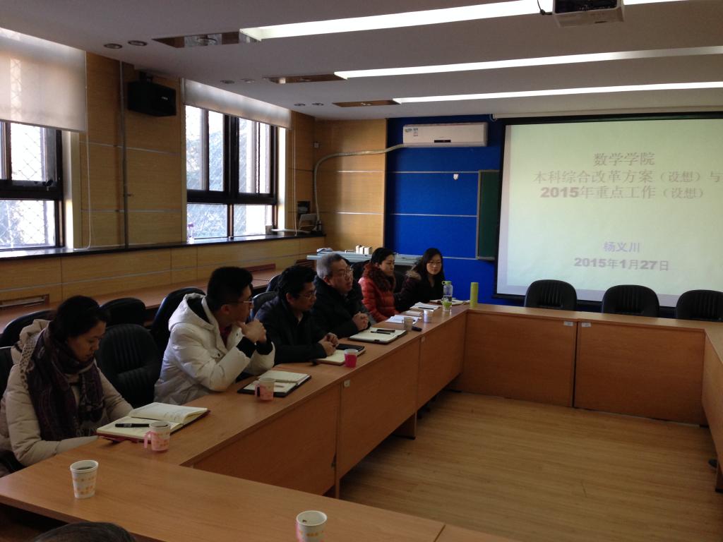 首先,李红捷书记对教务处冯处长一行六位领导的到来表示欢迎。随后教务处冯文全处长介绍了此次调研走访的目的:“到基层调研,既想听到好的声音,从学院的快速发展中受到鼓舞,同时也希望发现并尽可能解决好一些在我校教育教学改革过程中出现的问题。“ 郑志勇院长代表学院对学校和教务处长期以来对我院的关心和支持表示感谢,并就优化和整合学校教学资源配置、深化落实变教为学、以学为主的教学思维和重视理科实验班培养等问题做了重点说明。杨义川副院长向与会领导、老师汇报了学院本科教学综合改革初步方案设想和2015年学院本科教学拟重点问题。