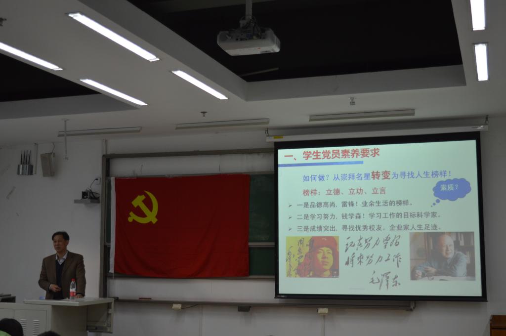 12月24号下午,我校沙河校区党委书记陈志英教授莅临我院学生党校,为第三期入党积极分子培训班学员带来了一堂关于自我素质提高、党员选拔的标准和同学们应该努力方向的精彩党课。一同出席的还有学院分党委副书记王菲老师,本科13级辅导员杨亮,14级辅导员王鑫。王菲老师主持此次党课。