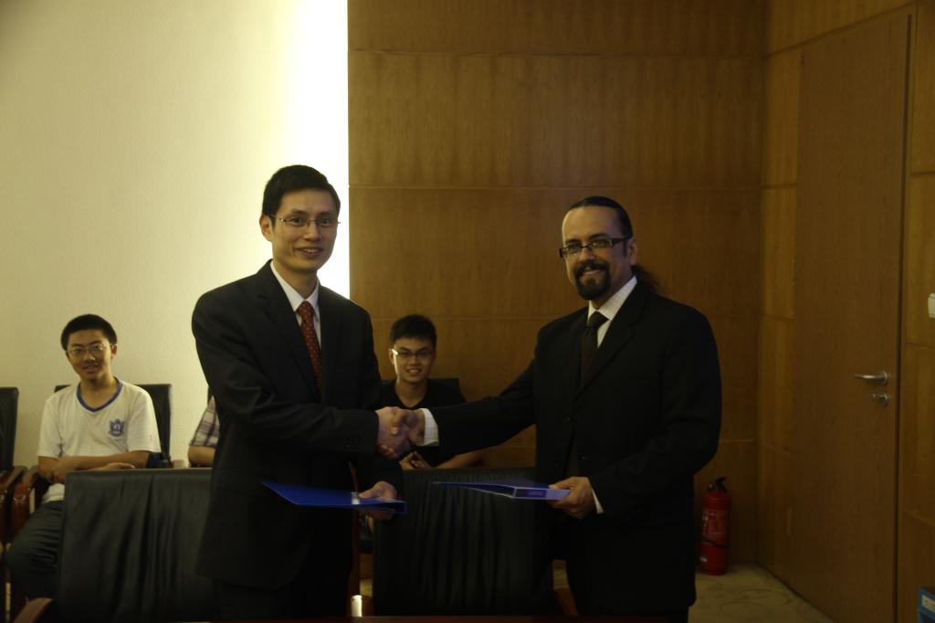 数学与系统科学学院院长助理严夺魁和美国德克萨斯A&M大学数学系Paulo Lima-Filho教授代表双方签署“BUAA- TAMU数学专业本科生快车道”。根据协议,双方在本科生联合培养方面达成一致意见,在美国德克萨斯A&M大学设立“BUAA- TAMU数学专业本科生快车道”,首批华罗庚班7名学生将于2014年9月赴美留学一年。