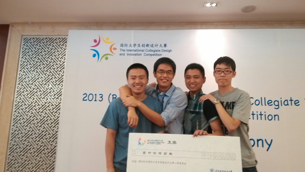 本届国际大学生创新设计大赛为期一周,得到了北航国际交流合作处、教务处、科协、教育基金会、后勤集团、网络中心等部门的大力支持。来自英国、美国、加拿大、西班牙、乌克兰、丹麦等国家以及中国香港、中国台湾地区的十余所海外高校和包括清华大学、北京大学、澳门网投官方网站等在内的多所国内985高校的优秀学生参加了比赛。大赛旨在加强学生的国际化交流与合作,拓宽学生的国际视野,同时培养学生的团结协作意识与创新精神。比赛围绕节能减排和智慧城市两个专题,在保证学科交叉、每队至少包含一名海外学生的组队原则下,由报名参赛的学生在大赛专用网站上自选专题,并根据个人意向进行自由组队;本次大赛将采用现场出题,要求各队在规定时间内根据题目完成资料收集、模型建立、报告撰写等环节,经现场答辩最终评选出优胜队伍。本次由我院大三学生邹夏林,电子学院大三学生刘学斌,生医学院大二学生吕若凡,清华自动化系大三学生张弛昱组成的Smart City No.3以现场展示环节全场最高分及论文第二高分的成绩获得第二名,斩获二等奖,创造了我院参加此项赛事的历史最好成绩。这个成绩也从侧面说明了平时学习的基础知识只有在应用中才能散发出耀眼的光芒,也希望同学们结合实际,将知识应用到解决实际问题中来,这样的学习才会是快乐有益的!