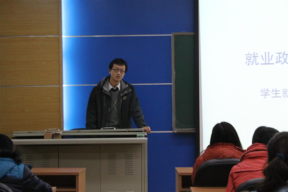 12月13日下午,数学与系统科学学院特邀材料学院副书记张江老师为主讲人,在主213为开展了“就业政策”的专题讲座,此次讲座由我院党委副书记王菲老师主持,共有学院领导,09级本科生,10级研究生,近百人人踊跃参加。