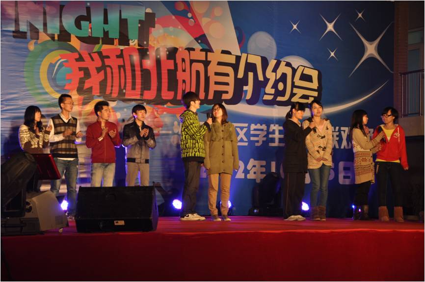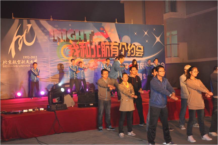 10月23日至27日,为了迎接北航60周年校庆, “I Love Beihang”校庆嘉年华系列狂欢活动在学院路和沙河两个校区闪亮登场。我学院与人文社会科学学院共同承办了由校团委主办的“iNight——我和北航有个约会”沙河校区学生校庆联欢晚会,整个晚会活动由两个学院分团委共同策划、组织,其中我院辅导员张文浩担任晚会执行总导演,辅导员李轩昂担任晚会节目的负责人,我院学生会承担了从晚会筹办、节目预审、晚会当天的组织工作、后勤工作等的大部分艰巨任务。
