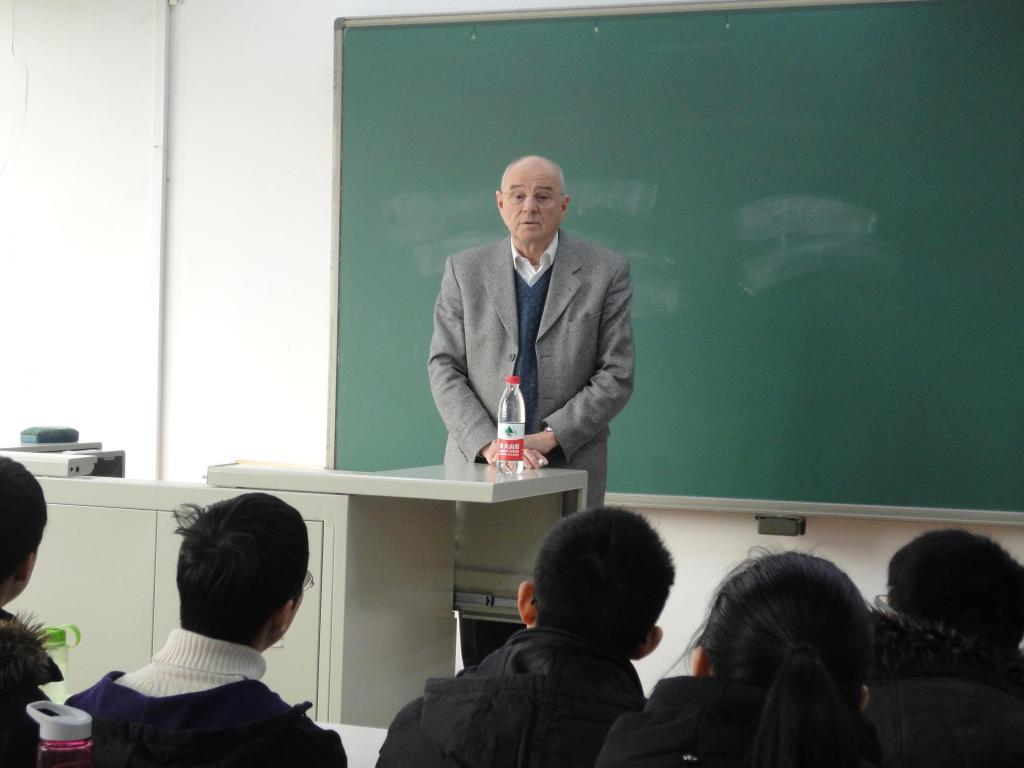 2月22日下午,数学与系统科学学院首位讲席教授Peyriere Jacques为沙河校区华罗庚班二年级学生开课。 数学学院院长郑志勇教授陪同Peyriere教授一起与华罗庚班同学做了面对面的交流,就教材及课程设置等与学生做了充分的沟通,华班学生对外籍教授的到来表示热烈欢迎,希望新学期里在Peyriere教授的带领下能更好更快的融入进国际授课环境。 数学学院首创讲席教授机制,是以提升人才培养质量为核心点,以提供良好国际化学习环境为支撑,全面促进拔尖创新人才成长。Peyriere教授系数学学院首位海外讲席教授,也是北航“理科人才培养基地国际教学科研团队”引智平台首席科学家,他是最早进入分形领域的专家,是该领域国际著名学者和重要领头人。Peyriere教授在该领域做出了众多杰出贡献,其中,Peyriere概率被誉为巴黎第十一大学50年来100项最重要成果之一。此次作为讲席教授前来北航工作,Peyriere教授将全职为数学学院本科生和研究生授课,在建立北航与巴黎十一大的国际合作方面,Peyriere教授也将发挥重要作用和影响。