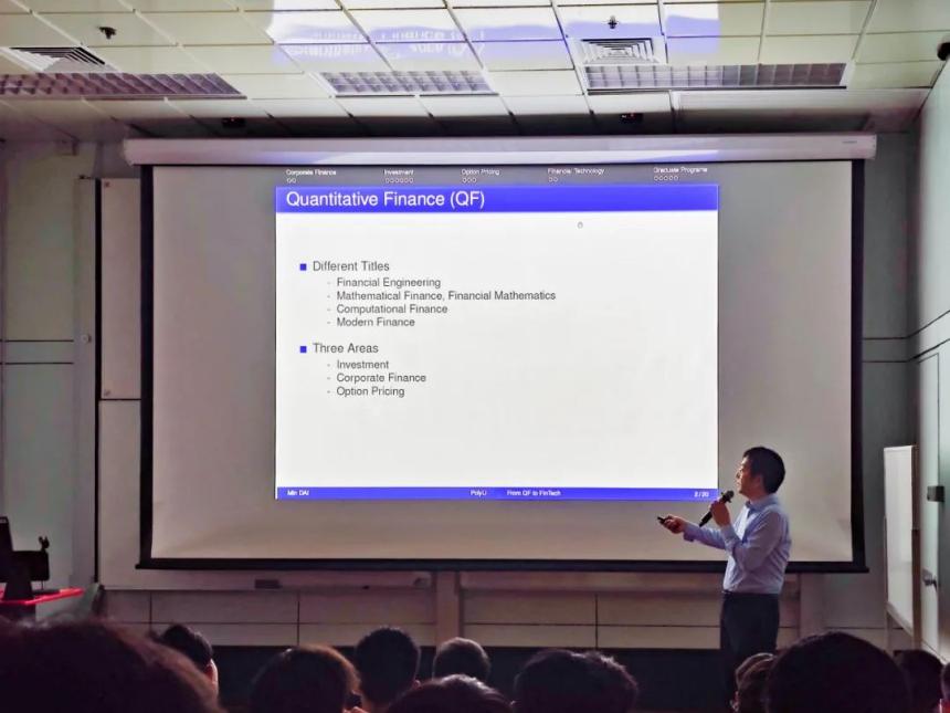 香港理工大学讲座教授戴民主讲讲座From Quantitative Finance to Fin-Tech,介绍了最优投资、期权定价和公司金融等量化金融中的三个重要领域,并讨论了金融科技领域中的若干问题,展现了数学在该领域的重要作用。