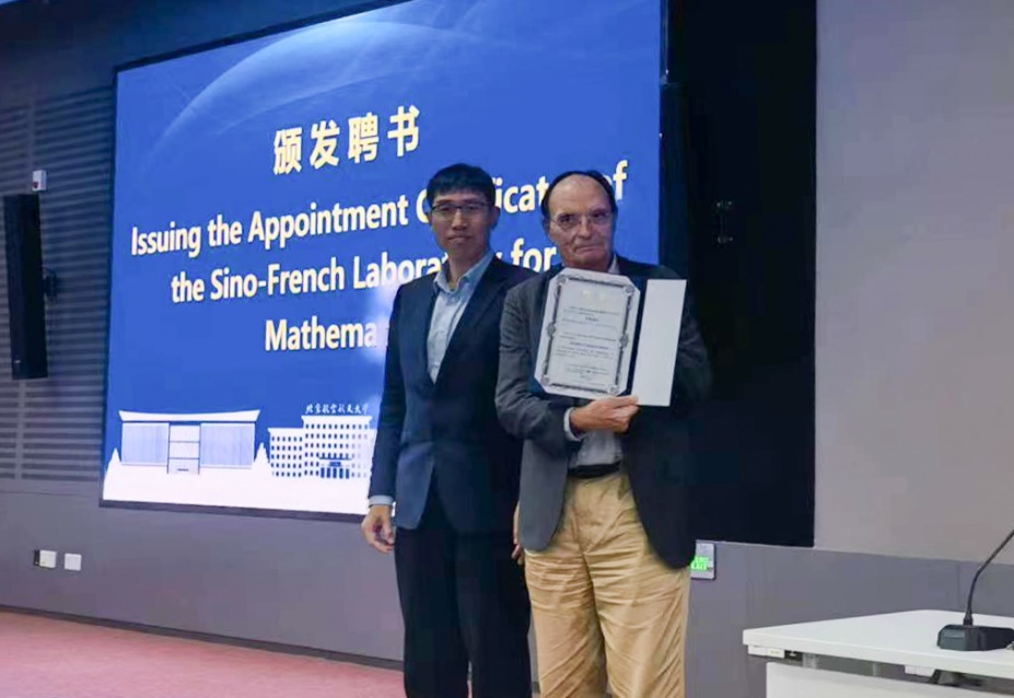 报告会上,在与会师生领导的见证下,北航副校长赵巍胜向Olivier Pironneau院士颁发北航中法数学实验室学术顾问专家聘书,并致辞热烈欢迎Pironneau院士的到访,期待他与我校师生的深入合作。