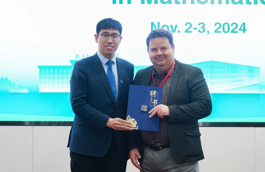 副校长赵巍胜出席研讨会,代表学校对国内外专家的到来表示热烈欢迎,并为顶尖期刊主编Ilias Kotsireas教授颁发中法数学实验室学术顾问专家聘书。