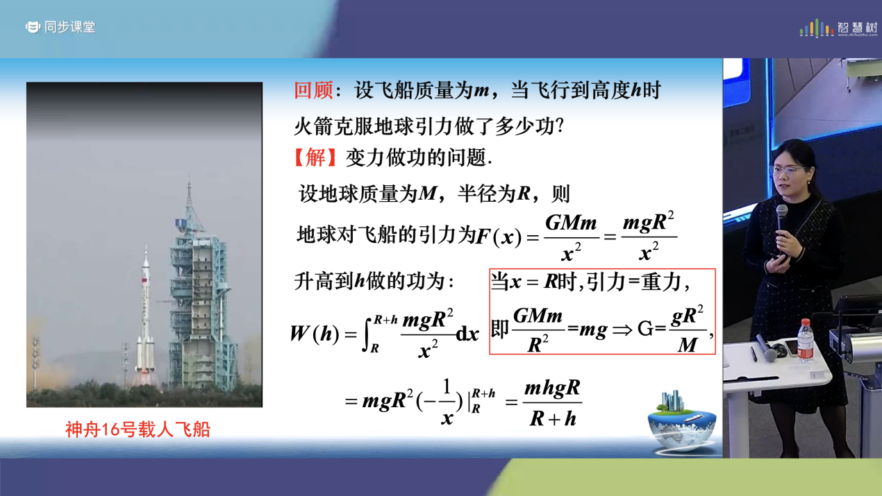 “探测器摆脱地球引力做多少功?多大的初速度能使其摆脱地球引力?”课程伊始,贺慧霞老师以神州十六号载人飞船和嫦娥6号探测器发射为切入点,探讨航天器发射中的物理问题及其与数学分析的联系,通过提问引导学生从定积分向无穷区间上的广义积分拓展,自然引出无穷积分的概念。此外,贺慧霞老师借助全景教学空间板书推演与动态图示,对比了暇积分与无穷积分的关系。