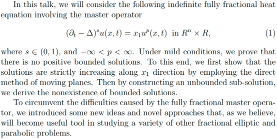 【数学论坛及分析、偏微分方程与动力系统讨论班(2024春季第13讲)】Nonexistence of positive solutions for indefinite master equations